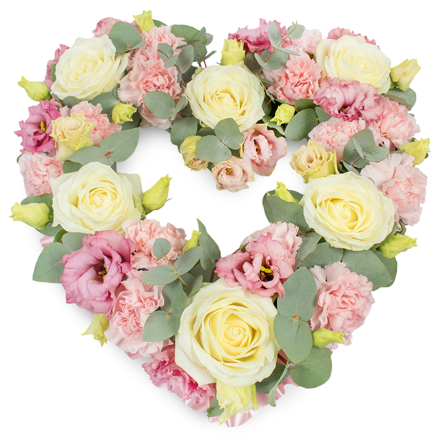 Our Sophisticated Heart Tribute bouquet is designed to convey your sincere emotions with elegance. Featuring a harmonious mix of white roses, pink carnations, pink lisianthus, and eucalyptus leaves, this arrangement offers a perfect balance of color and texture.